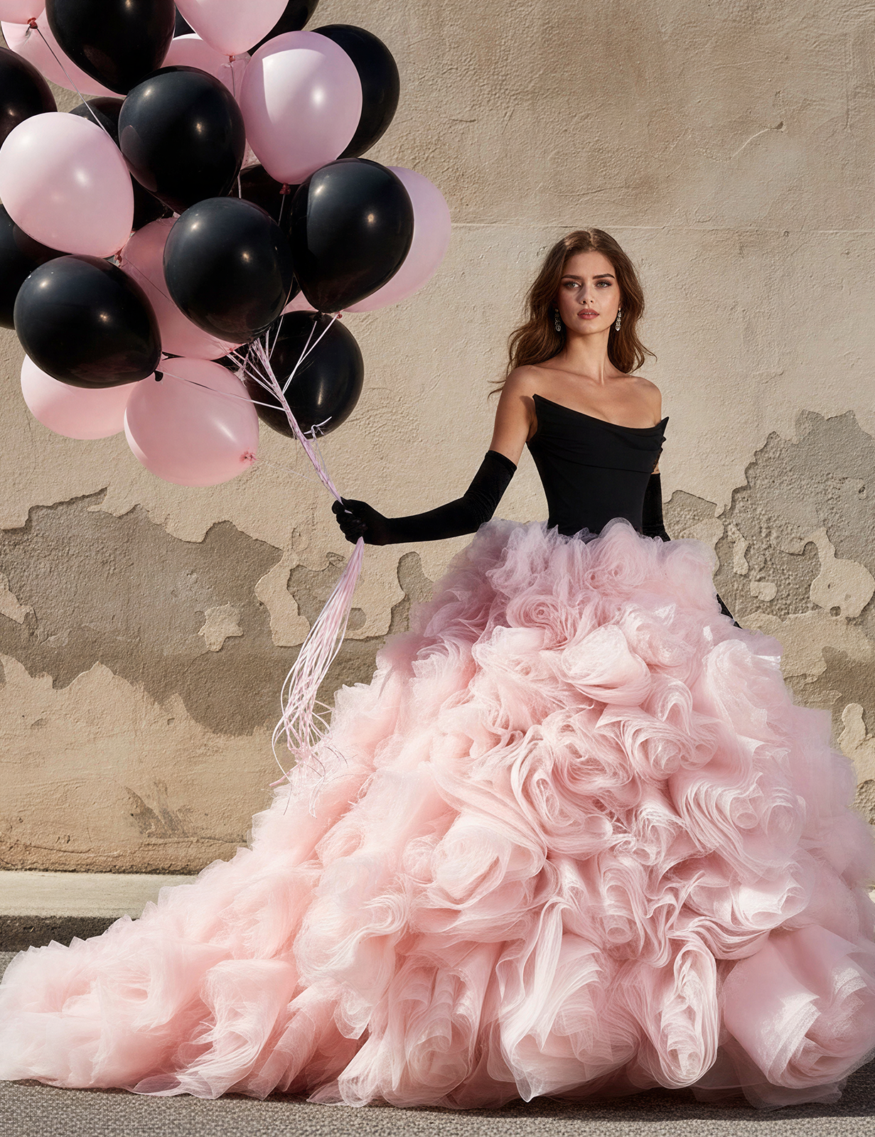 Strapless Asymmetrical Ruffled Maxi Dress in Pink