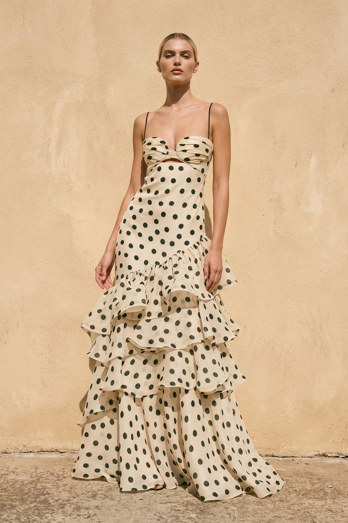 Hidden corsetry provides shaping and stability, keeping the dress perfectly in place through any movement.