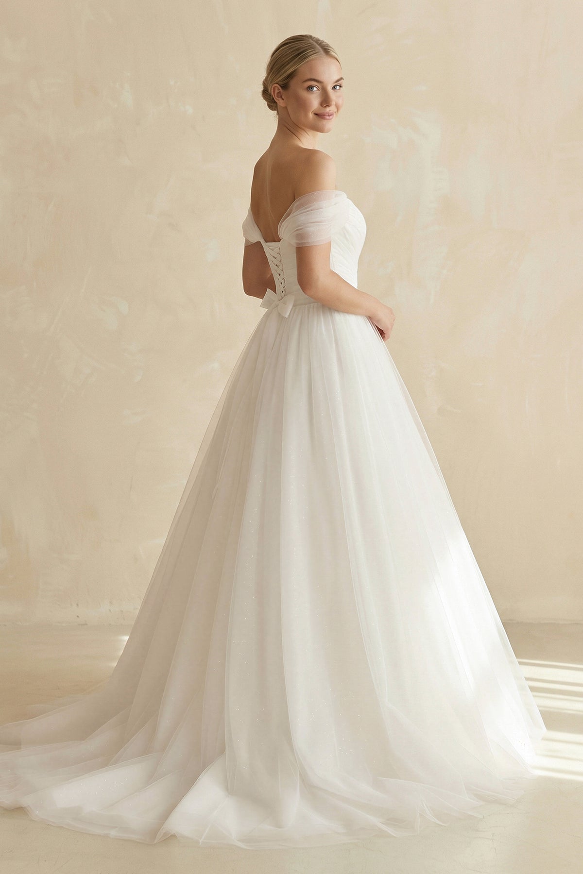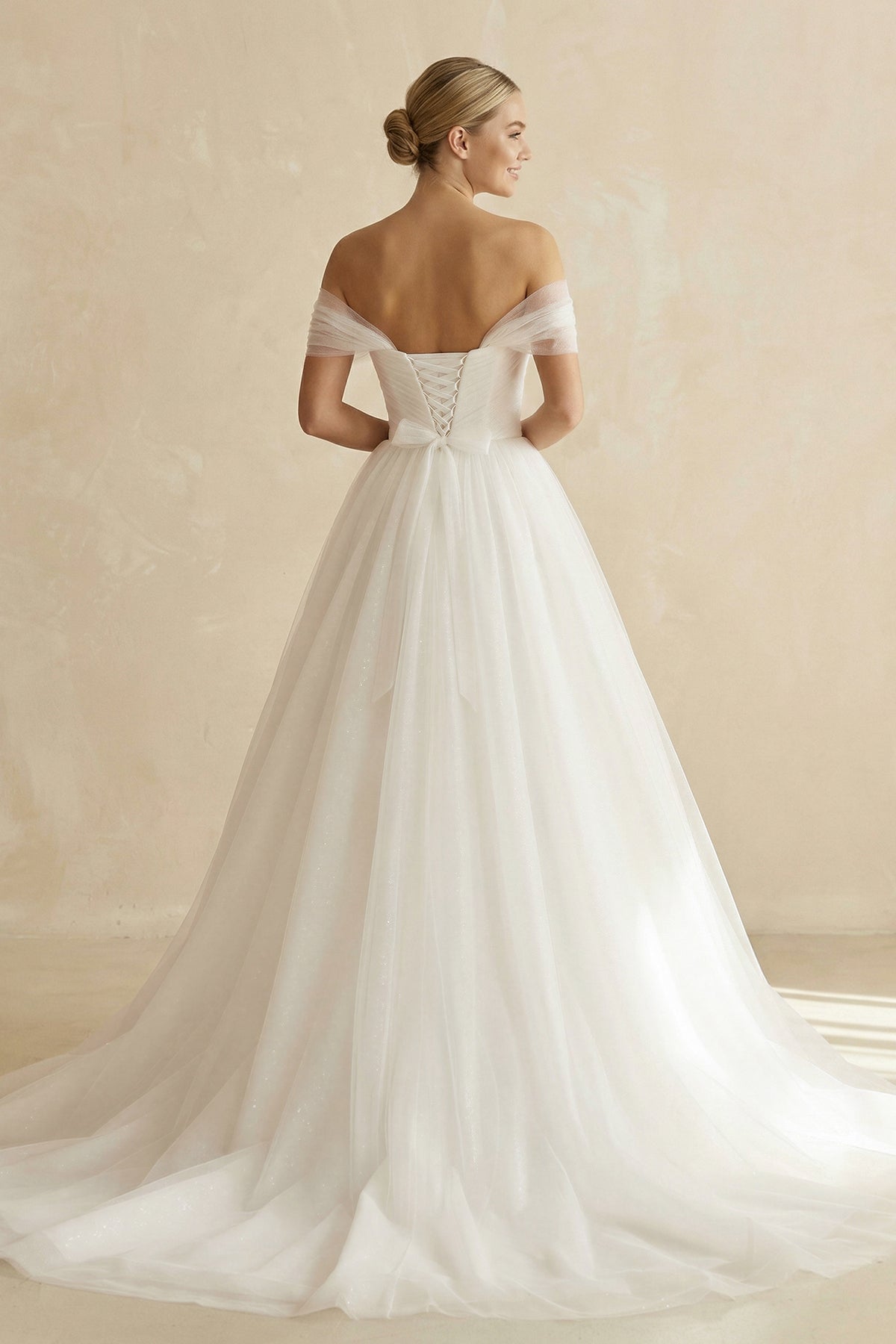 Off-the-Shoulder A-Line Tulle Wedding Dress in White