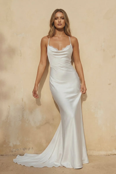 Spaghetti Straps Mermaid Satin Wedding Dress in White