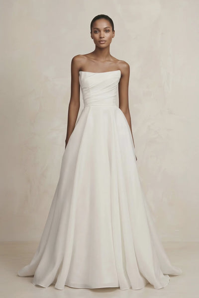 Strapless A-Line Satin Ruched Wedding Dress in Ivory