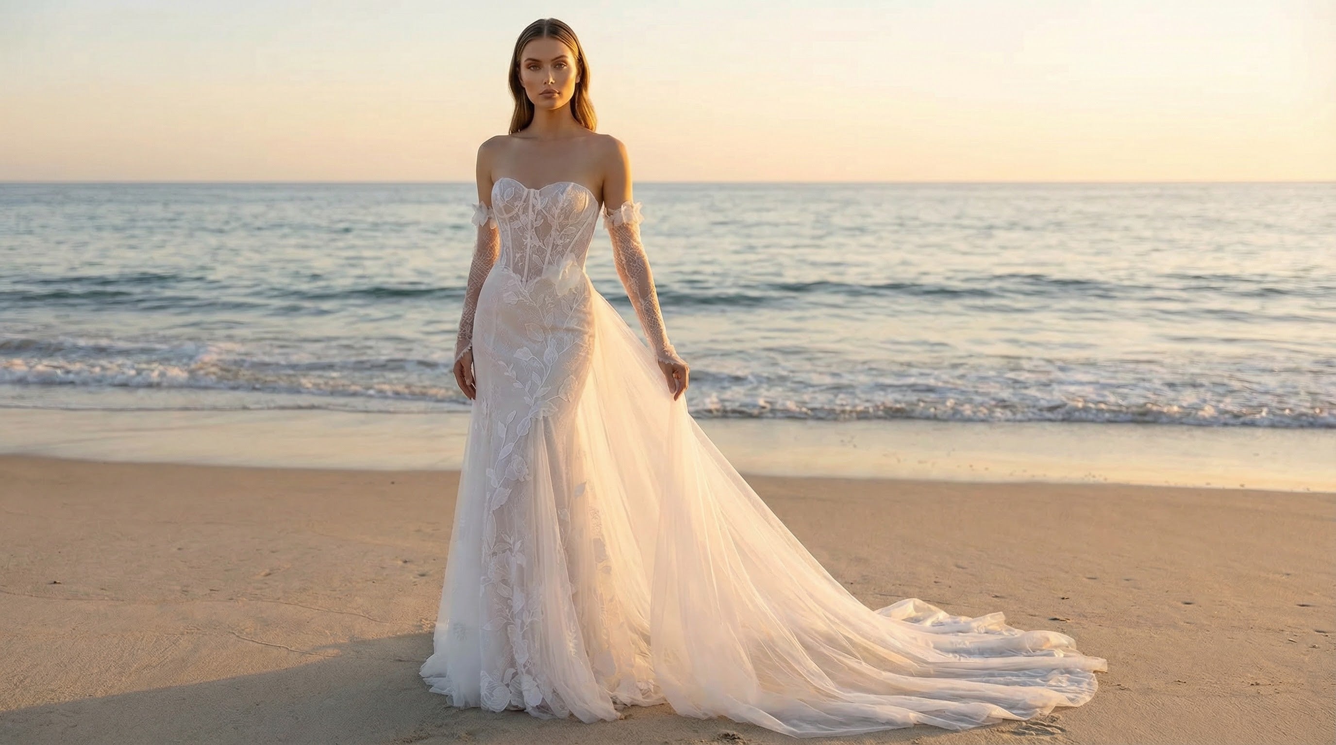 Spaghetti Straps Mermaid Wedding Dress with Appliques
