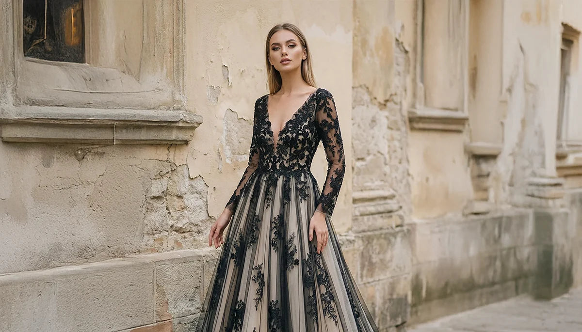 A-Line Long Sleeves Tulle Wedding Dresses With Appliques